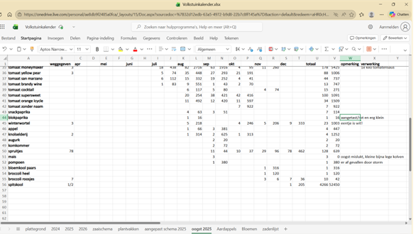 - Ook de mais heeft niet gepresteerd. Van de 9 planten heb ik totaal wel 1 half kolfje kunnen oogsten. Omdat ze wel vrij veel ruimte innemen heb ik besloten in 2026 de mais een jaartje over te slaan